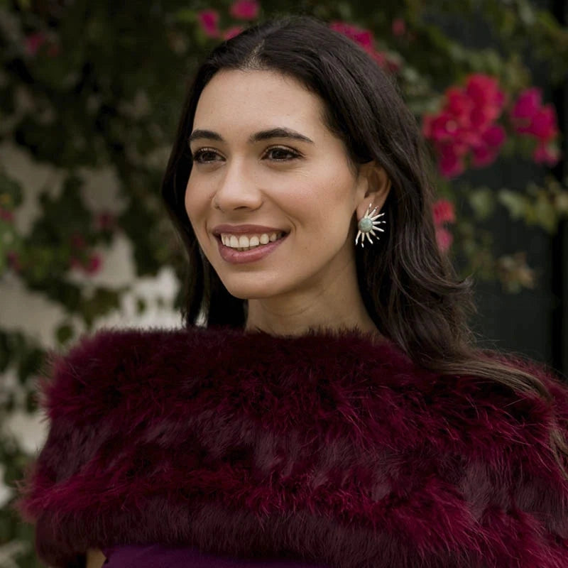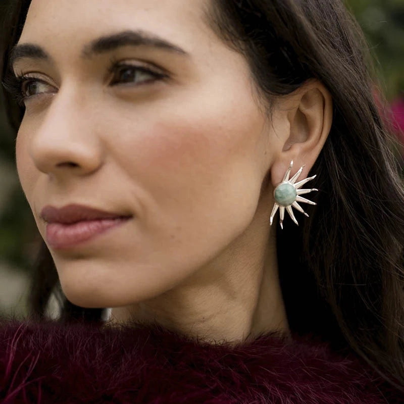 These stunning earrings are designed in the shape of a half sun, with golden rays surrounding a central stone, evoking the serenity and beauty of the northern Egyptian city.