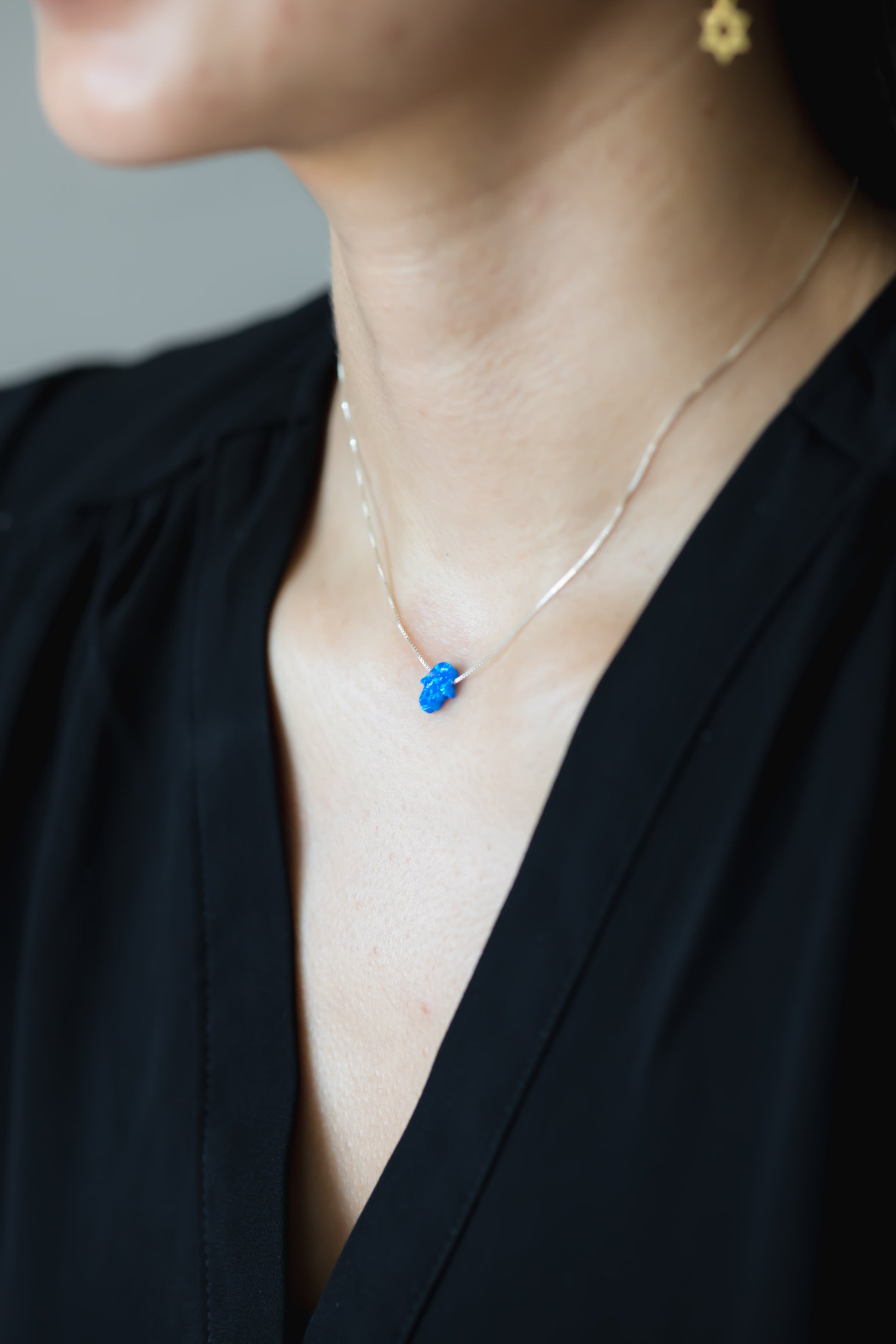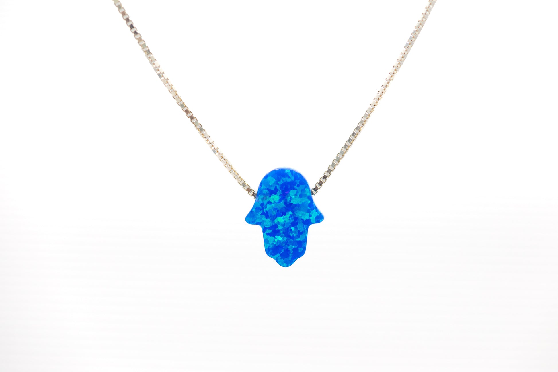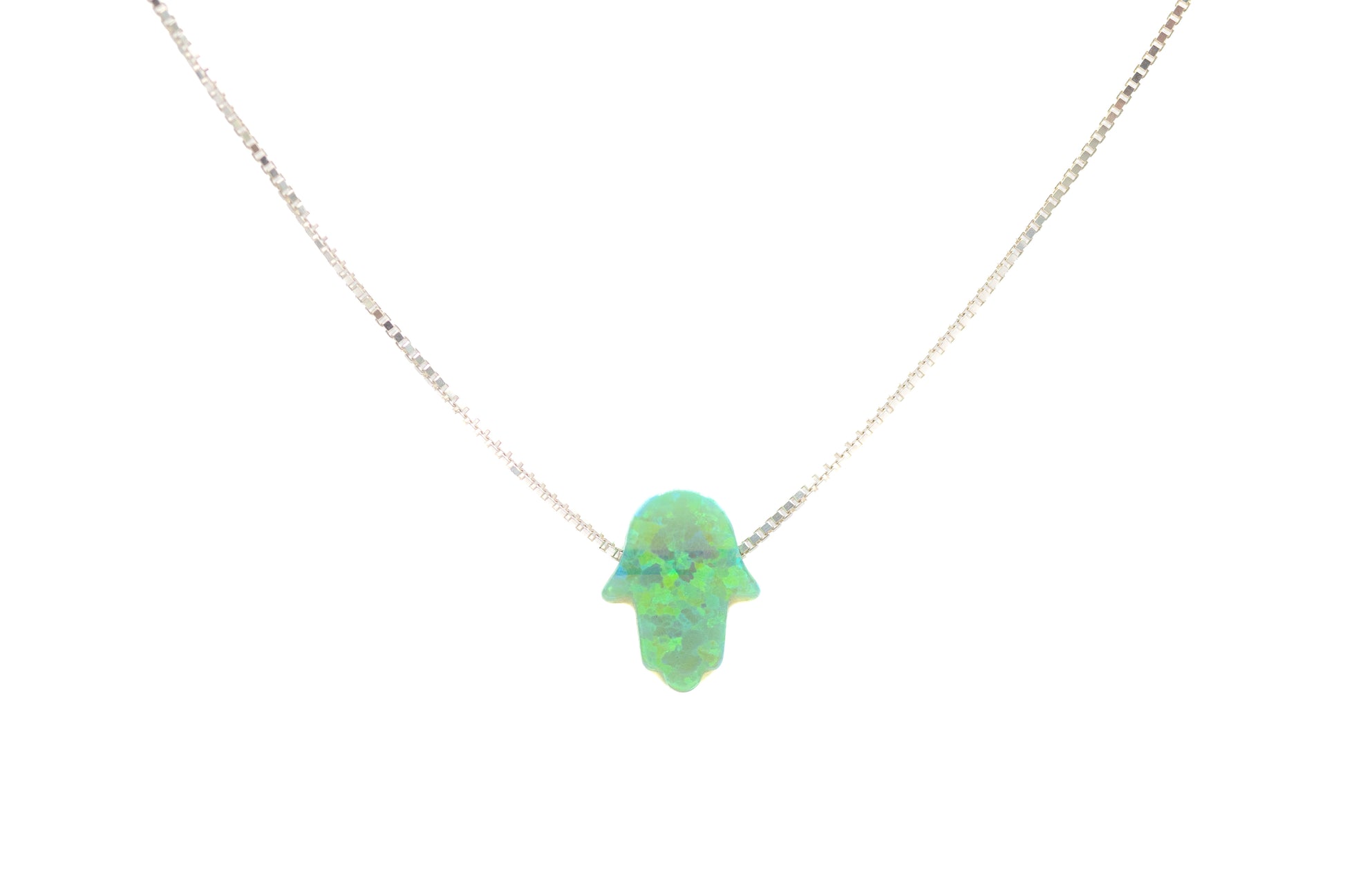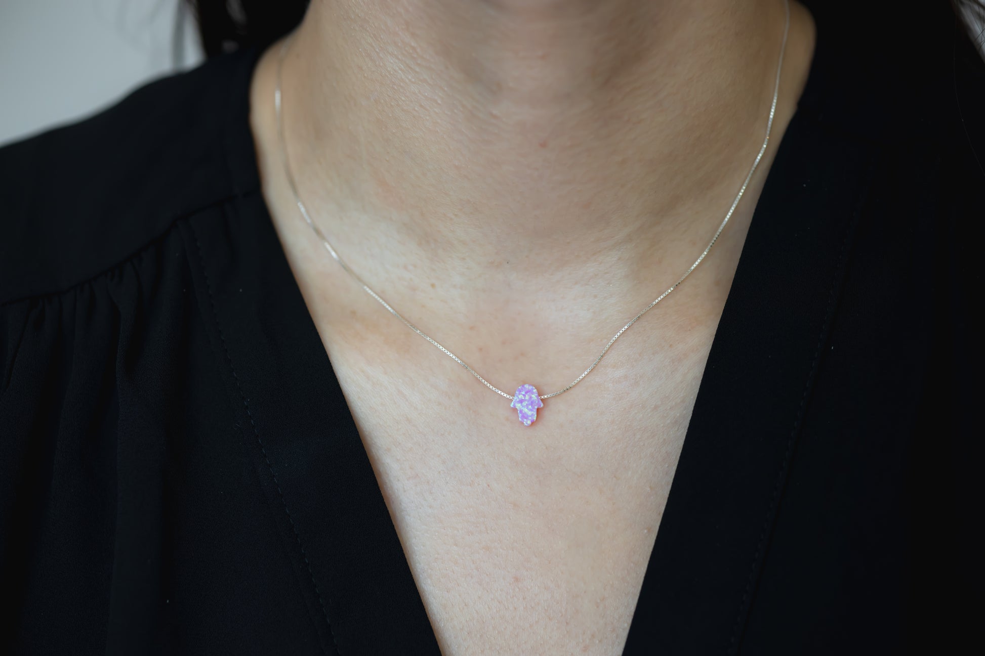 Sterling silver chain with few options of opal Hamsa Pendant.