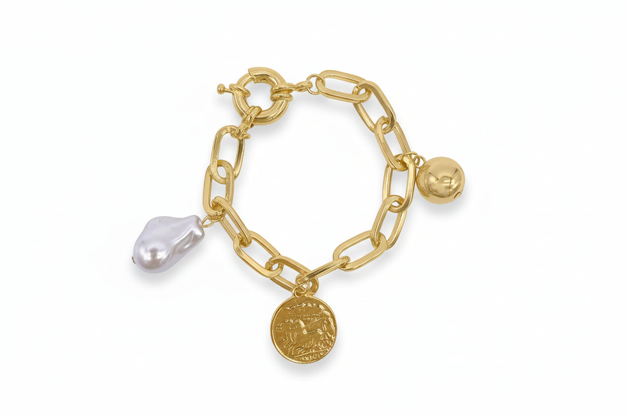 Pearl and Charm Link Bracelet