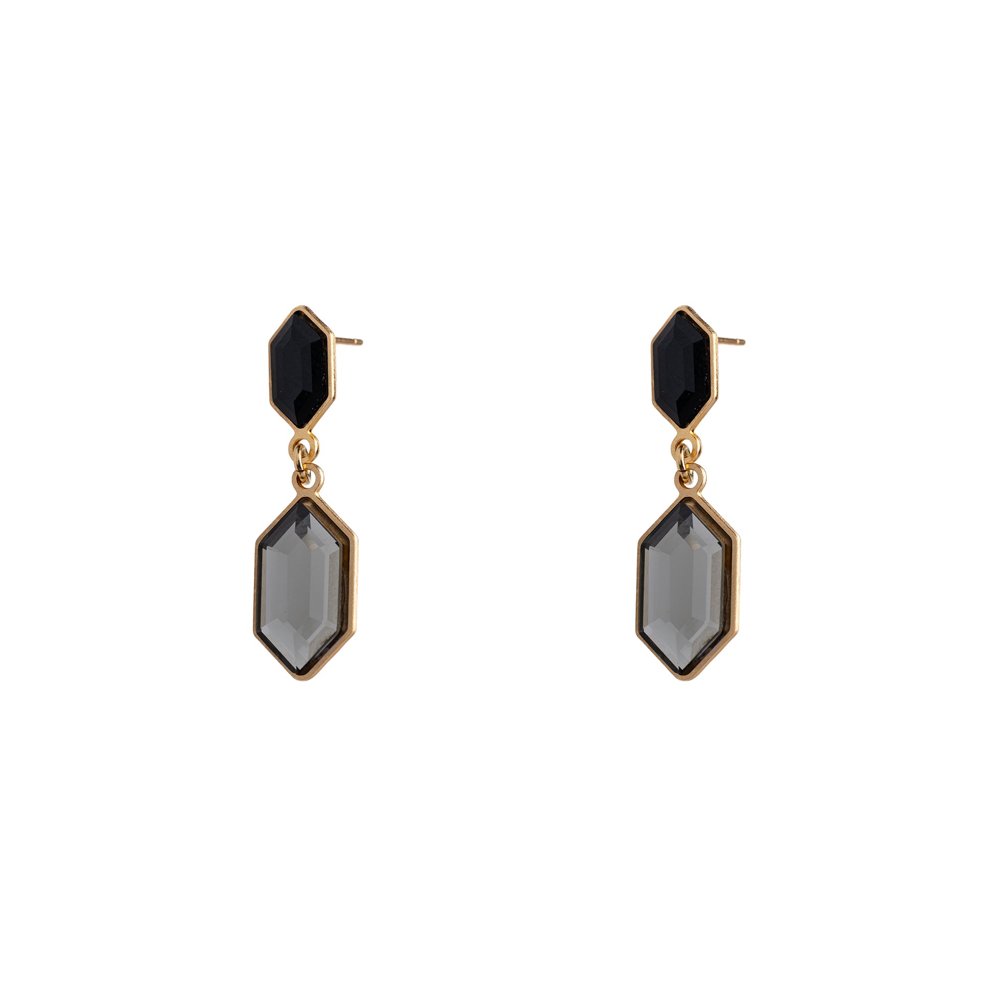 Stunning earrings from the “Beautiful Eye” collection. Uniquely and impressively designed, made of 24-karat gold-plated metal or silver-plated in a matte shade, studded with gray and black Swarovski stones. Total length of the earrings is approximately 4 cm.